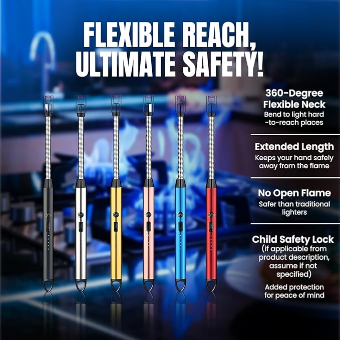 Rechargeable Electric Arc Lighter | USB Rechargeable, Windproof & Flameless | Flexible Neck for Gas Stove, Candles & BBQ